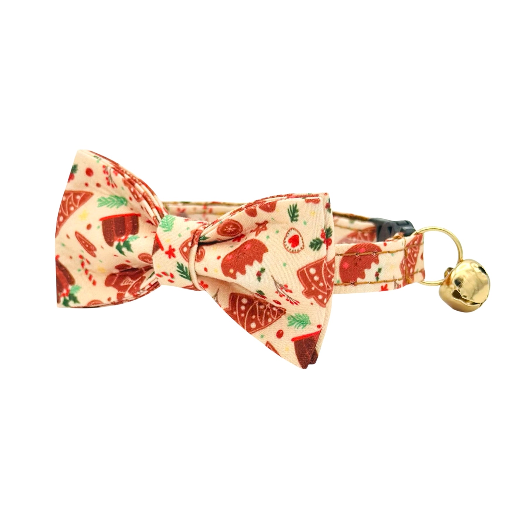 Elevate your feline friend's wardrobe this holiday with our Christmas Gingerbread Cat Collar. Crafted with premium materials, this collar does not compromise on style or comfort. Featuring a removable bell and a breakaway buckle for ultimate safety, giving you peace of mind that your cat is secure in any adventure.